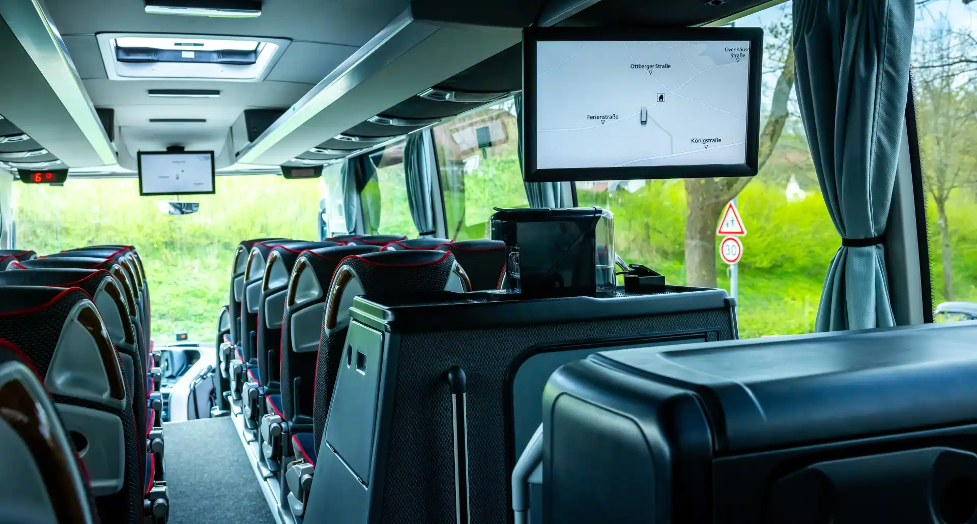 Um Ihnen eine angenehme Reise zu ermöglichen, sind unsere Reisebusse bestens ausgestattet. Bequeme Sitze, großzügige Beinfreiheit, Klimaanlage und Unterhaltungsmöglichkeiten sorgen während der Fahrt für Komfort.